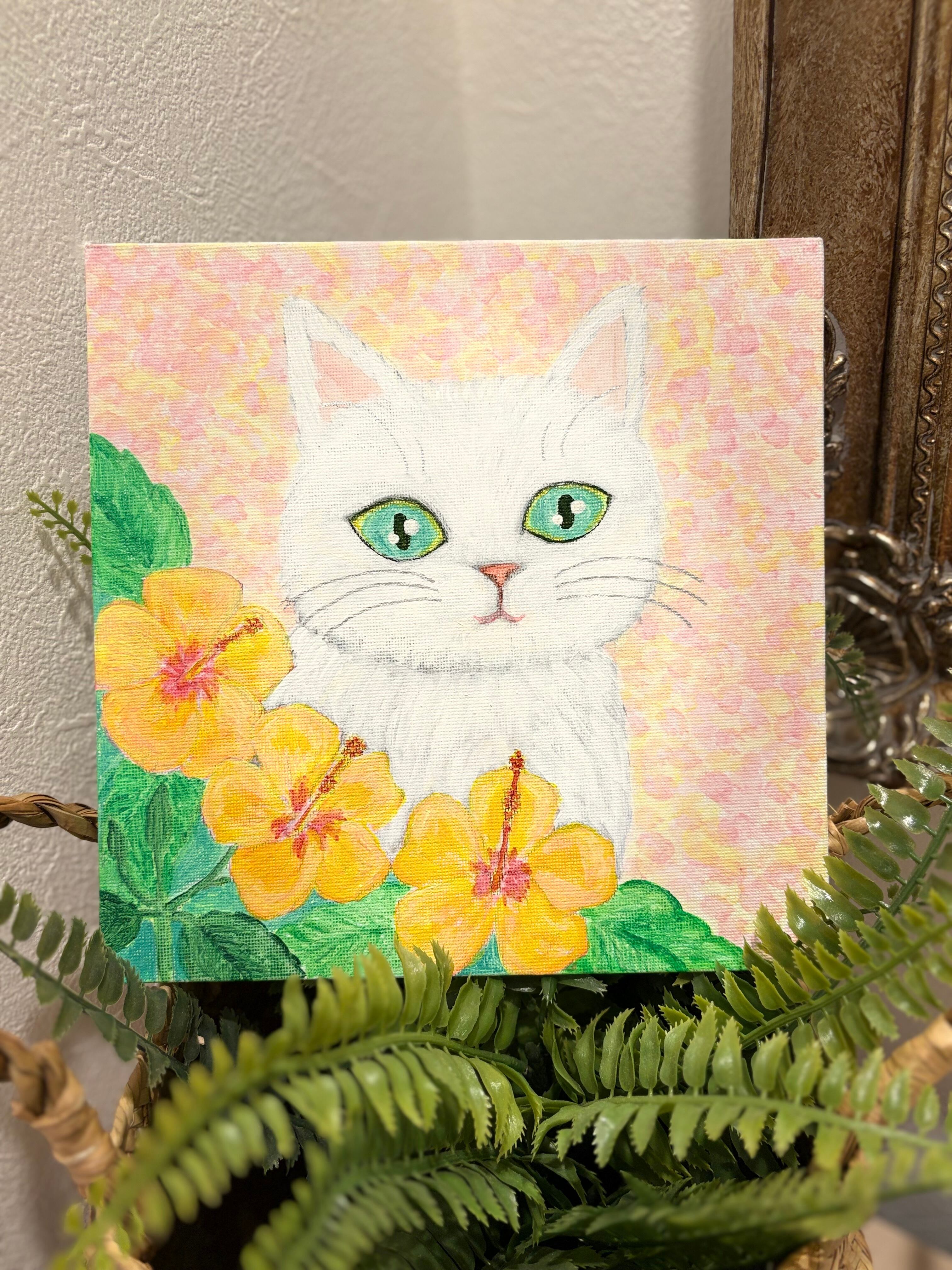 原画【幸せを運ぶ白猫】